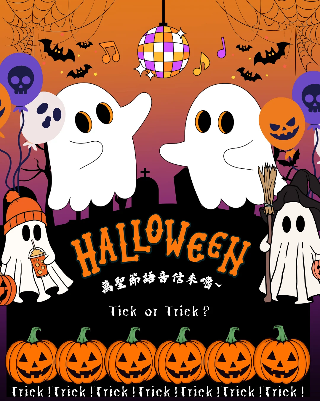 因為今天是——聖!誕!節!🎃萬!聖!節!🎃🎉 可能是少了你那篇甜甜的貼文祝福,語音信才被搗蛋鬼亂送了。 快回到你最愛的粉絲團,留下可愛的貼文或留言🍬 說不定下一封語音信,就會乖乖跑回你手上唷~💌